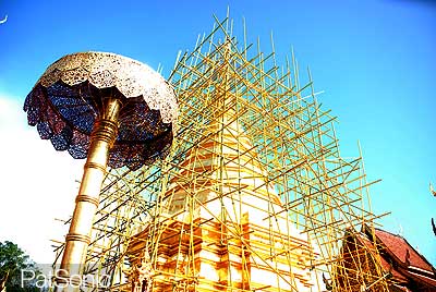 เอาล่ะ เริ่มทริปของเราได้เสียที ล้อหมุนไปถึง ถ.ห้วยแก้ว มุ่งหน้าขึ้นสู่ “พระธาตุดอยสุเทพ” ที่ต้องมาเยี่ยมทุกครั้งเมื่อมาเยือนเชียงใหม่ ช่วงนี้ องค์พระํธาตุอยู่ในระหว่างบูรณะซ่อมแซม เราจึงเห็นไผ่สีทองเต็มองค์พระธาตุไปหมด…
