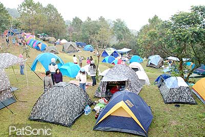 เราได้พื้นที่กางเต็นท์แถบ Zone D พบว่าผู้คนมาแย่งที่กันกางเต็นท์ที่ลานนี้กันเยอะมากๆ นั่นคงเป็นเพราะนี่เป็นช่วงหยุดยาวนั่นเอง อากาศก็หนาวเย็นได้ใจ เพราะเป็นช่วงที่อุณหภูมิลดลงพอดิบพอดี ช่วงที่เราเริ่มกางเต็นท์กัน อุณหภูมิของอากาศรอบกายก็ลดลงเรื่อยๆ ในที่สุด นักกางเต็นท์มือใหม่ที่กลายเป็นลูกมือก็กางเต็นท์เสร็จลง พื้นที่กางเต็นท์ใน Zone D มีลักษณะเป็นชั้นๆ ลดหลั่นกันไป มีลมเย็นๆ พัดผ่านเท่าๆ กันหมด มีคนเดินมาแนะนำให้เรากางเต็นท์หันหน้าไปอีกทาง ไม่ให้ลมเข้าเต็นท์เพราะมันจะหนาว