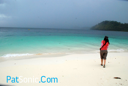 ผมเดินขึ้นไปถ่ายรูปแชะแรก ก่อนที่ทีมงานจัดเตรียมบันไดให้พวกเราขึ้นเกาะ ภาพที่เห็น “มันสวยมาก” ทรายขาวนวลและละเอียด ตัดกับสีน้ำทะเลสีเขียวมรกตใส และท้องฟ้าสีหม่น เกาะสวรรค์หรือไรนั่น