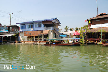 เราขึ้นรถสองแถวสาย “สมุทรสงคราม – โรงเจอัมพวา” มีคนใจเราขยับให้นั่ง ตลอดทางไม่ได้ถ่ายภาพใดๆ เพราะไม่มีเวลาหยุดพักให้ทำอะไรเท่าไหร่ จะหยิบกล้องบนรถสองแถวก็กลัวเกิดเหตุไม่คาดฝันเพราะนั่งท้ายสุดพอดี จึงได้แต่เอามือจับกระเป๋า และมองไปรอบๆ จนรถมาจอดแถวหน้าธนาคารกรุงเทพ ก่อนขึ้นสะพานข้ามคลอง ที่เรามารู้ในเวลาเพียงไม่กี่นาทีต่อมาว่า มันคือ
