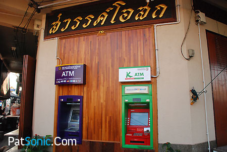 สั่งมากินทั้งไก่ย่าง ตำไทยปู ต้มแซ่บ ไปจนถึงข้าวเหนียว ล่อซะอิ่มแล้วจึงเดินไปหาที่พักที่จองเอาไว้เรียบร้อย เพื่อจะได้เช็คอินแล้วเดินเที่ยวกันแบบตัวโล่งๆ ไม่ต้องแบกอะไรให้หนักหลัง ไม่ไกลกันนักจากภวัตส้มตำไก่ย่าง เราก็เดินมาถึงห้องแถวไม้สีน้ำตาล ที่มีตู้ ATM 2 เจ้า เจ้าหนึ่งม่วง เจ้าหนึ่งเขียว คงรู้กันว่าเจ้าไหน