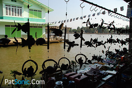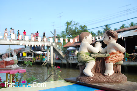 เมื่อเดินมาจนสุดท้าย ที่คลองอัมพวาบรรจบกับแม่น้ำแม่กลอง เราก็เดินกลับไปทางเดิมใหม่ จนหมูน้อยได้เสื้ออีกตัวจากร้าน… (ชื่อร้านอะไรหว่า) ที่มีเสื้อลายสวยๆ มากมาย เป็นลายการ์ตูนทั้งที่เจ้าของร้านวาดเอง และที่รับมาจากพี่แป้ง เจ้าของลายเส้นการ์ตูนประกอบพ็อคเก็ตบุ๊คที่คุ้นเคยกันดี