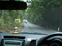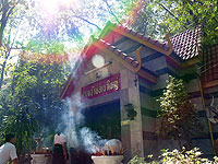 หลังจากนั้น เราก็มุ่งเข้าป่า เปิดกระจกรับลมและกลิ่นไอของป่าเขา ไปจนถึงที่พักรถและหาข้าวกันกัน ระหว่างที่ยืนสั่งข้าวกันอยู่นั้น สายตากก็เหลือบไปเห็นสิ่งเคลื่อนไหวด้านล่างหลังร้าน…