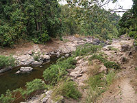 เดินไปก็บ่นไปว่า พวกเรานี่แปลกเนอะ จัดตารางเที่ยวกันแปลดี ไปขึ้นภูสอยดาวหน้าหนาว ที่ดอกหญ้าหงอนนาคโรยราไปแล้ว แล้วยังมาเที่ยวน้ำตกเหวนรกในหน้าแล้ง เห็นสายน้ำเล็กกระจิ๋วเดียว