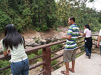 น้ำตกช่วงนี้น้ำน้อยมาก คำเตือนบอกเอากันนักท่องเที่ยวผิดหวัง ประมาณ “ข้าบอกเอ็งแล้วนะ” แต่พวกเราก็เดินเข้าไป ทางเดินเป็นปูนเรียบ เดินได้สะดวก สะพานก็ทำใหม่ให้แข็งแรงกว่าเดิม(จากครั้งก่อน) ผ่าน 6 สะพาน เราก็ไปถึงน้ำตก ที่เห็นได้ชัดว่า น้ำน้อยมากจริงๆ