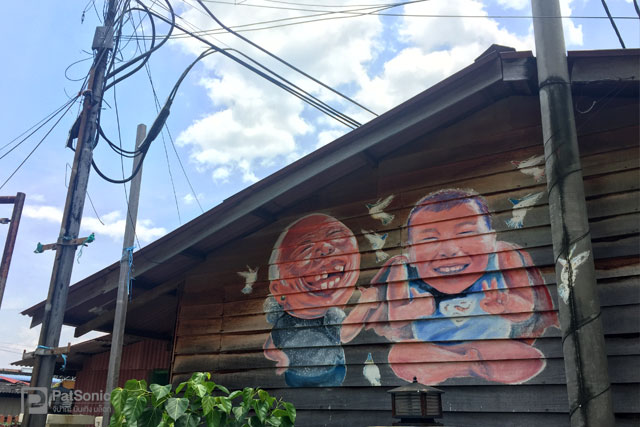 เดินต่อหันหน้าไปทางทะเล ก่อนที่ถนนจะตัดกับ Pangkalan Weld ก็จะพบกับ สตรีทอาร์ตอีกชิ้นหนึ่ง เด็กสองคนปรากฏกายที่หน้าต่าง มือกำลังจะไขว่คว้าอะไรสักอย่าง ข้างนอกมีจักรยานที่บรรทุกอาหารอยู่