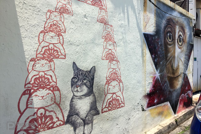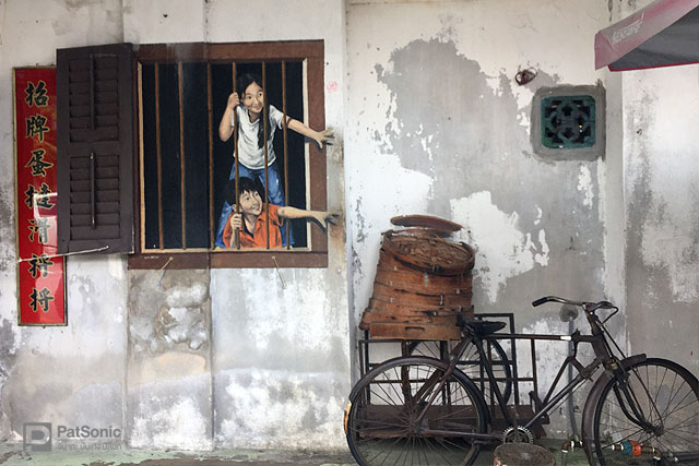 Street Art คือคำภาษาอังกฤษที่เรียกถึงภาพเขียนสีน้ำมันบนกำแพง/ผนัง ปีนังเป็นเมืองเก่าที่ได้รับอิทธิพลจากโลกตะวันตกมายาวนาน ลักษณะของอาคารในแบบชิโนโปรตุกีสมีปรากฏอยู่แทบทุกมุมของเมือง