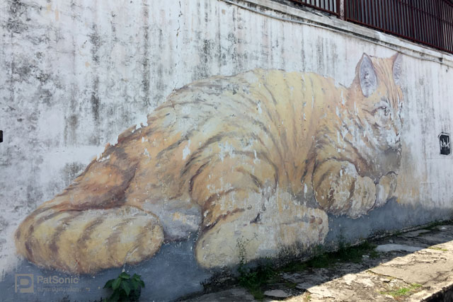 อีกด้านเป็นภาพวาดของแมวสีเหลืองตัวใหญ่ สีเริ่มจะจาง บางทีก็อาจจะหายากหน่อย เพราะวันที่เราไปก็พบว่ามีรถบรรทุกจอดบังอยู่ เกือบไม่เห็นแล้วเหมือนกัน