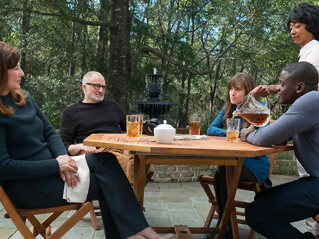 เขาได้รับรู้ว่าบ้านหลังนี้มีแต่คนรับใช้ที่เป็นคนผิวสี และแต่ละคนก็ดูมีทีท่าแปลกกับเขา ดังถูกล้างสมองเอาความคิดที่ไม่สนิทกับคนขาวออกไปเสียหมดจด แถมเขาได้พบกับปาร์ตี้ที่มีแต่คนผิวขาว ที่แต่ละคนดูเหมือนจะร่ำรวยกันมาจากไหนไม่รู้ แถมยังดูจะดีกับเขาเหลือเกิน