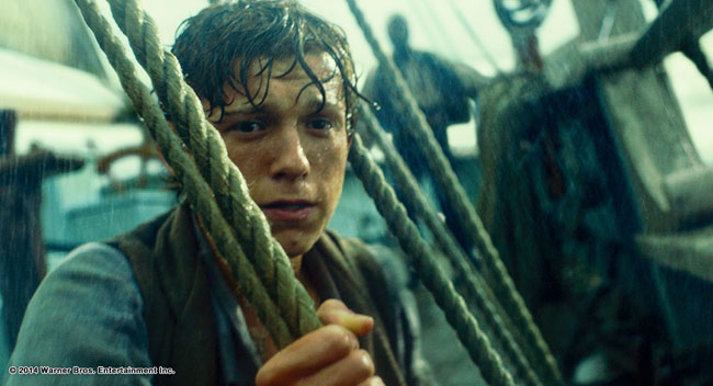 หนังอย่าง ‘หัวใจเพชฌฆาตวาฬมหาสมุทร’ ไม่ได้เล่าเพียงเรื่องราวของสองหนุ่มบนเรือที่ต้องเจอกับวาฬยักษ์เพียงเท่านั้น หากยังเลือกที่จะเล่าถึงช่วยเวลาที่ Herman Melville มาเยือนเพื่อสอบถามข้อมูลกับบุคคลสุดท้ายที่ยังมีชีวิตอยู่ผู้ที่รอดจากเหตุการณ์ครั้งนั้น Thomas Nickerson (Tom Holland จาก ‘Lo imposible’ และกำลังได้แสดงนำใน ‘Captain America: Civil War’) วัยหนุ่มน้อยที่มีปมอยู่กับบางสิ่ง