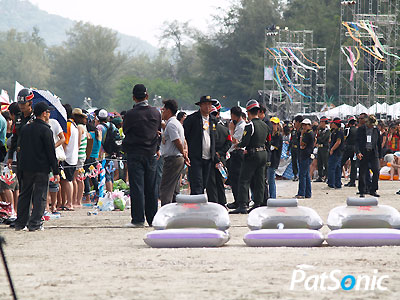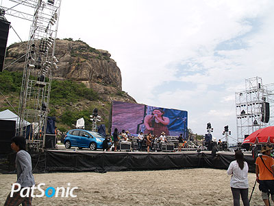 ผมกลับมาที่งานอีกครั้ง ช่วงบ่ายสองครึ่งเศษ ก็พบกับการจัดงานที่ดูแต่แรก น่าจะดูดี แต่ก็รู้สึกแปลกๆ อยู่บ้าง กับการจัดวางพื้นที่สำหรับ VIP หน้าที่ ที่กินไปครึ่งหนึ่งของหาด และยาวไปอีกหลายร้อยเมตร ปล่อยให้คนที่มางานแบบคนธรรมดาต้องดูคอนเสิร์ตจากที่ไกลๆ จากจอ LCD ฟังเสียงจากลำโพง รับมือกับน้ำทะเลที่เริ่มร่นขึ้นมาเรื่อยๆ ไม่ถึงค่ำ หลายคนต้องยืนดูยืนเต้นอยู่ในน้ำเสียแล้ว ขณะที่พื้นที่ VIP อันกว้างใหญ่ยังคงโล่งว่าง เหตุเพราะ VIP ทั้งหลายยังไม่มาถึง