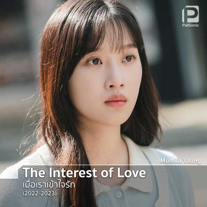 ผลงาน มุนกายอง ที่กำกับโดย โจยองมิน ‘The Interest of Love’ เป็นซีรีส์แนวดราม่าโรแมนติกที่เล่าเรื่องรักอันแสนสับสนและซับซ้อนของหนุ่มสาวพนักงานธนาคาร กายองเล่นเป็น อันซูยอง พนักงานรับฝากถอนเงินสาวสวยของสาขาที่ทำงานมาก่อนฮาซังซู (รับบทโดย ยูยอนซอก) แต่เพราะความที่จบมัธยม ทำให้หน้าที่การงานของเธอไม่ก้าวหน้าไปไหน เธอเป็นพี่เลี้ยงยามเขาเข้ามา แม้ต่างคนต่างชอบกันแต่ก็เหมือนกำแพงหลายชั้นเข้ามากั้นขวาง อุปสรรคของความรักที่เล่าผ่านประเด็นชนชั้นที่ชวนอึดอัดหัวใจแต่ก็อยากไปต่อ